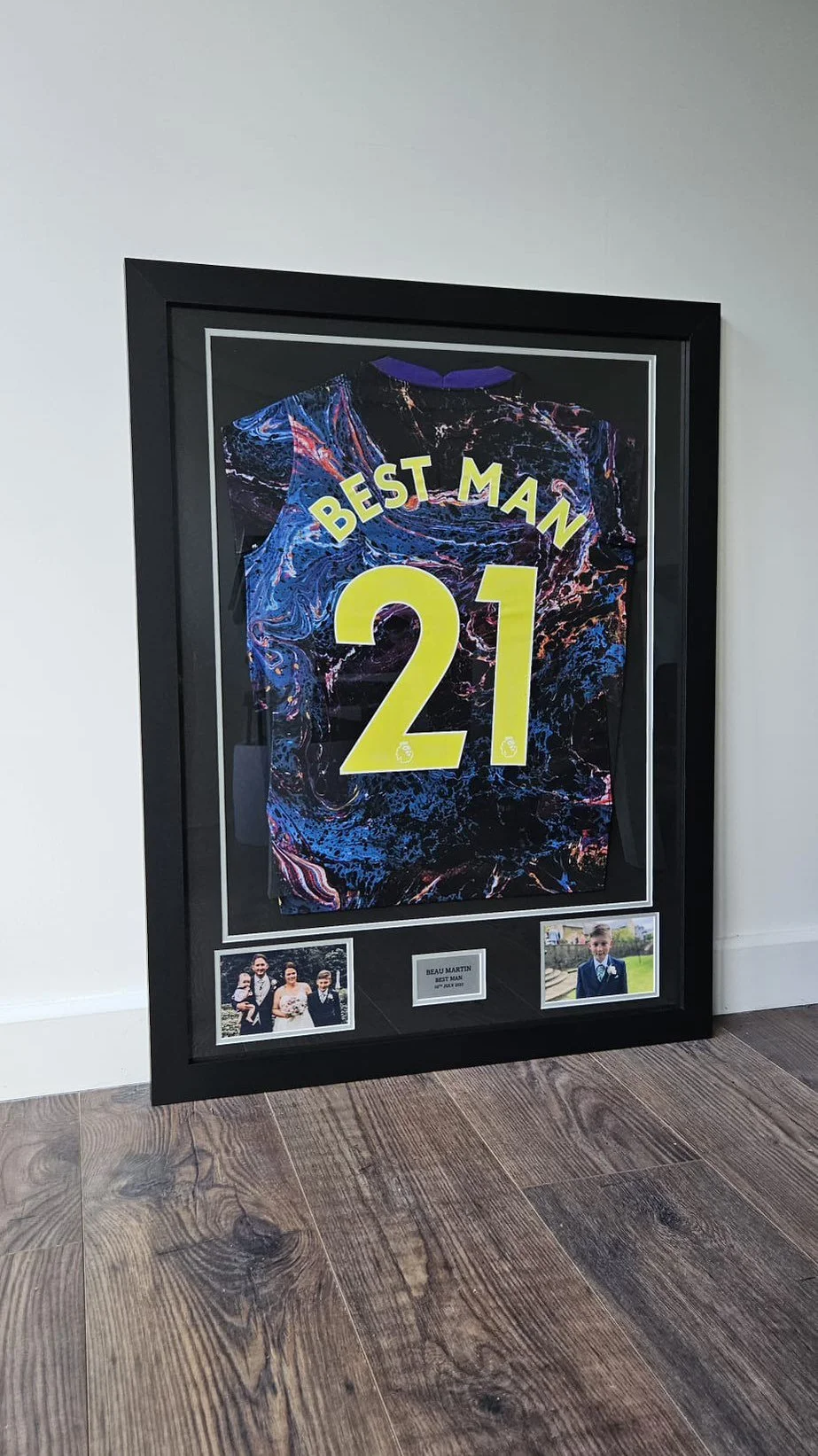 Handmade in the UK using premium materials, we specialise in framing sports shirts for both adults and children - whether it’s football, rugby, or any other team kit, we ensure your shirt is beautifully preserved and professionally presented.